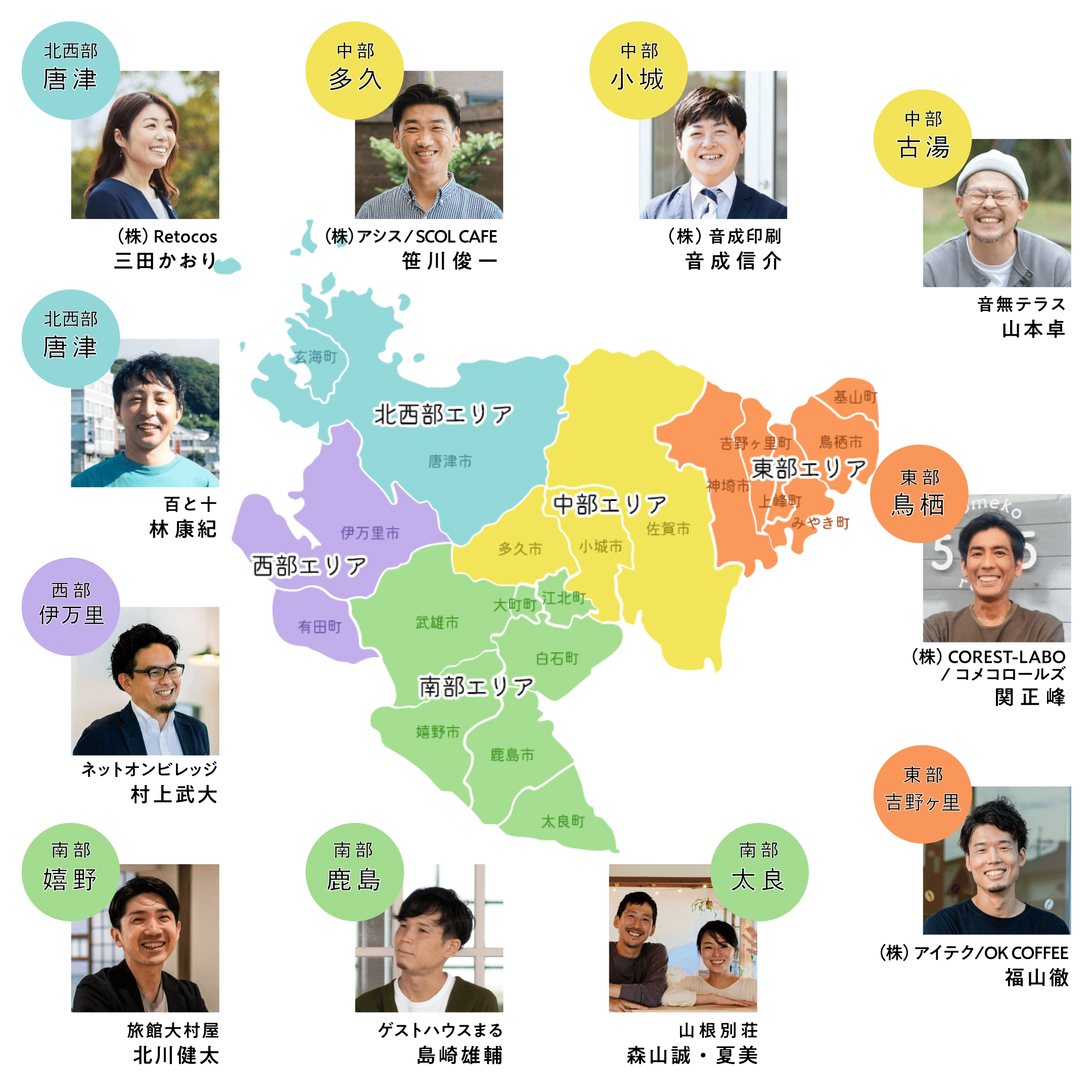 佐賀県が任命した移住起業サポートコーディネーター(clay)、佐賀県各地で活躍する起業家や事業者から成る移住起業サポーター、及び外部支援機関で構成されるネットワークで、この三者が連携して、佐賀県への移住起業をサポートしています。