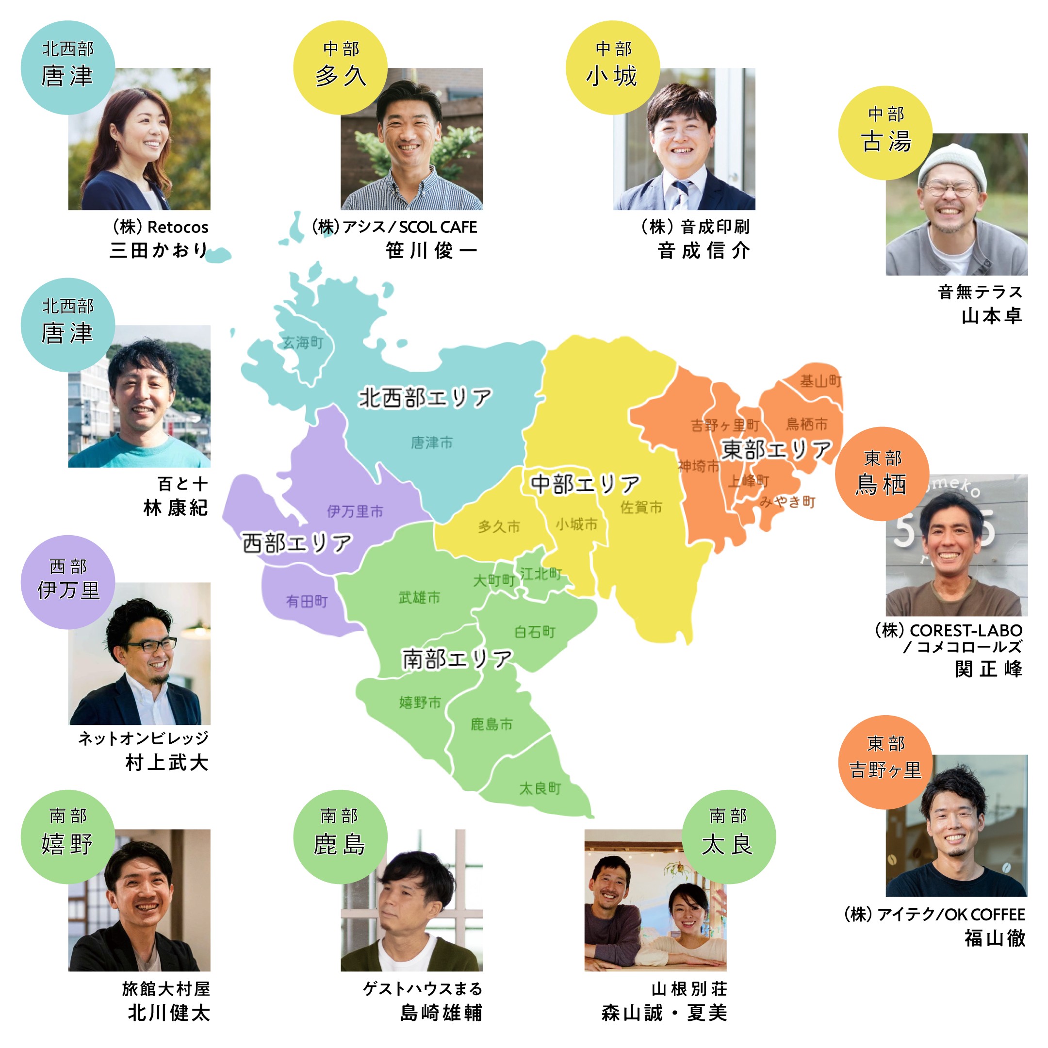 佐賀県が任命した移住起業サポートコーディネーター(clay)、佐賀県各地で活躍する起業家や事業者から成る移住起業サポーター、及び外部支援機関で構成されるネットワークで、この三者が連携して、佐賀県への移住起業をサポートしています。